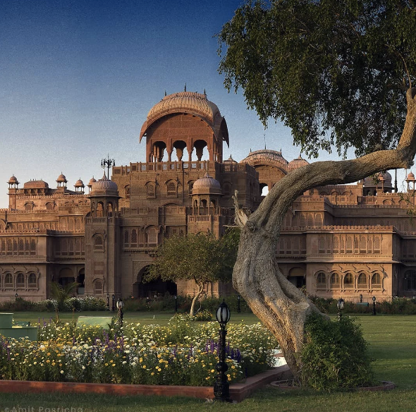 Rao Bika proceeded to conquer the region to create a sizeable kingdom which was named Bikaner after its founder. Bikaner became The Red Pass, a meeting point of desert trade routes where the products of India were exchanged with those of China, Africa, Persia and Arabia. In 16th century, Raja Rai Singh, the sixth ruler of Bikaner built the Chintamani Durg, now popularly known as Junagarh Fort. Bikaner’s most remarkable ruler was Maharaja Ganga Singh, who ascended the throne in 1887 at the age of seven and ruled until 1943, transformed Bikaner from a feudal kingdom into a progressive state. It was felt that the medieval atmosphere of the Junagarh Fort was not the right environment for a modern young prince and also it did not lend itself to the arrangements and conveniences of modern times. The construction of the new palace The Laxmi Niwas Palace and Lallgarh Palace began on the outskirts of Bikaner city. Designed by Sri Swinton Jacob, as residence of Maharaja Ganga Singh, the Lallgarh Palace is one of the best examples of Indo-Saracenic architecture amalgamating the best Rajput, Muslim and European styles. Now converted into a luxury Heritage Hotel, it reminds you of the days when the grand courtyards and imposing lawns rang with the pomp and pageantry of royal durbars.